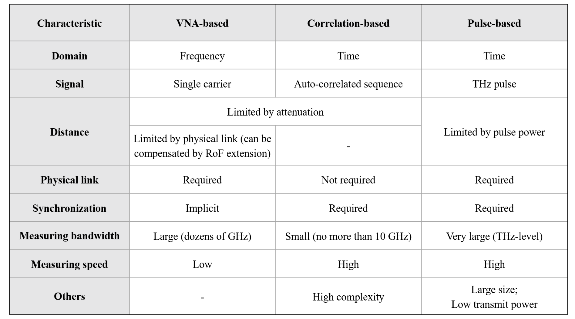 There are three feasible wideband channel measuring methodologies in the THz band: