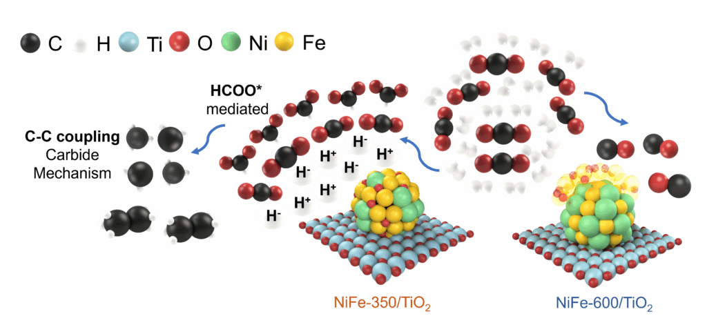37. 【Experiment and Theory】Jiang, M.#, Wang, Z.#, Liu, Z., Li, Z., Yin, Y., Tian, F., Li, A., Xu, H., Gong, X.*, He, Y.* Ambient-pressure C–C coupling of CO2 hydrogenation by NiFe/TiO2 bimetallic catalyst. J. Am. Chem. Soc., 2025, 147(37), 33495-33506 *Co-corresponding author (Link)